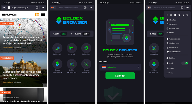 Beldex Browser lako je koristiti no pri svakom će se pokretanju morati najprije spojiti na neki od dostupnih čvorova (službeni se čvorovi nalaze u Nizozemskoj i Francuskoj), a tek onda nastaviti sa surfanjem, ali na umu valja imati da katkada može doći do zagušenja mreže što će rezultirati sporijim otvaranjem stranice (no to je uobičajena cijena rješenja poput ovoga).