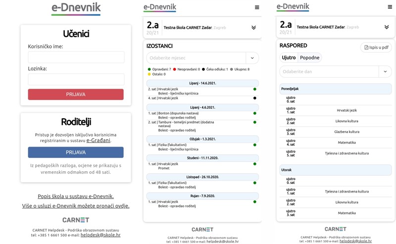 | Namjena | Pristup e-Dnevniku za učenike i roditelje |