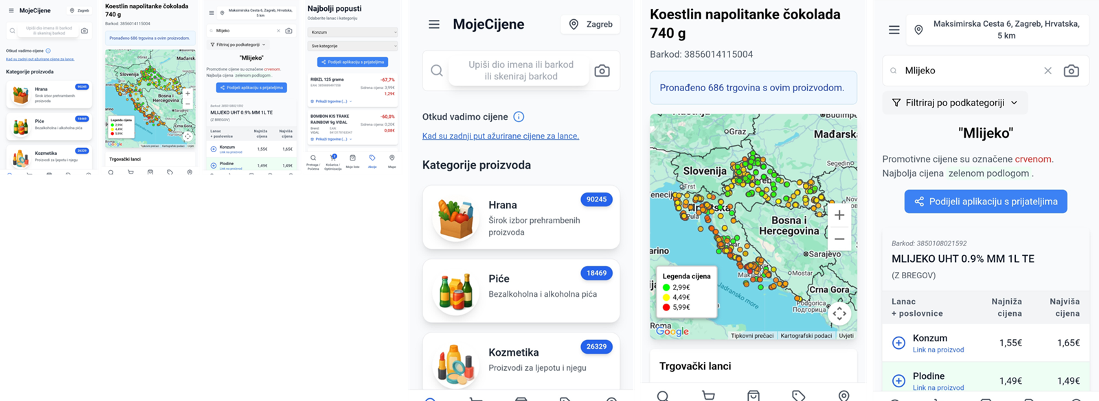 Moje Cijene - uspoređivanja cijena u različitim trgovinskim lancima diljem Hrvatske
