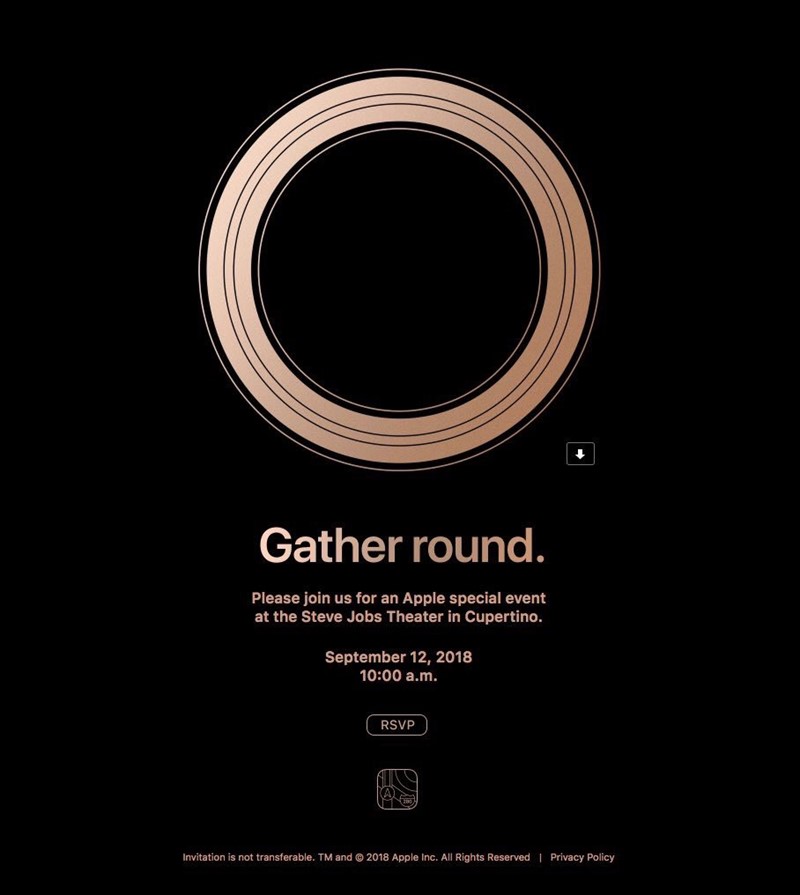 Pozivnica za ovogodišnje veliko predstavljanje ne otkriva previše – grafika koja prikazuje krug i tekst "Gather round" (okupimo se) referenca su na novo sjedište Applea, dok neki bakreno zlatnu boju teksta na pozivnici tumače kao naznaku dodavanja nove boje u ponudu flagship modela novog iPhonea. Kako bilo – do otkrivanja svih detalja trebamo pričekati tek još nešto manje od dva tjedna