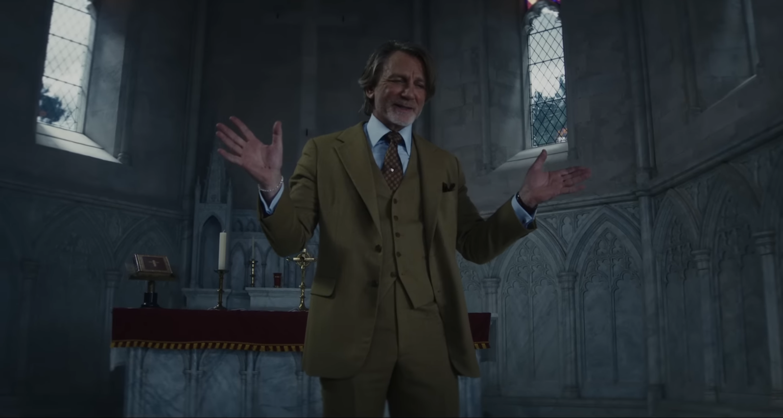 Istodobno, riječ je o možda najčišćem detektivskom filmu u serijalu. Iako ansambl povremeno djeluje neujednačeno, središnji trokut – Craig, O’Connor i Close – drži film čvrsto na okupu. Vizualno, Wake Up Dead Man ima vlastiti identitet: jesenski tonovi, drvo, sjena i svjetlo. Uz to, u filmu ima i odličnih trikova, poput onog s uspoređivanjem slike i „stvarnog” viđenja kafića, odnosno samog kadra. Nastavno na to, Blanc kaže kako je riječ o savršenom, nevjerojatnom zločinu – plodu fikcije, krimi-romana – nečemu što ne pripada našem, „stvarnom” svijetu.