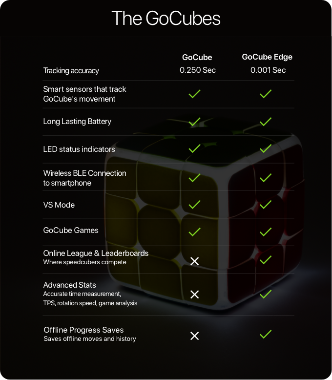 Potonje će uvelike pomoći početnicima u slaganju Rubikove kocke da nauče kako ju složiti što brže, u što manje poteza. Kupci moćnije, GoCube Edge inačice moći će se natjecati s drugim korisnicima, a svoje umijeće slaganja i objaviti online, na TOP listi kako bi i svi znali kako ste rangirani u odnosu na ostale korisnike.