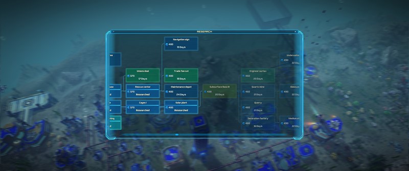 Početno sakupljanje morskih spužvi, izlov ribe, te širenje životnog prostora ubrzo se preusmjeruje na izvlačenja nafte, izgradnju raznih elektrana i povezivanje svih građevina u jedinstvenu opskrbnu mrežu, što pruža solidnu količinu zabave. Proučavanje pogodnosti svakog dijela dna, ovisno o namjeni i izgradnja adekvatne industrije, od ključnog su značaja, čemu treba pridodati i ispunjavanje prohtjeva novih žitelja podmorja, brigu za smanjenim troškovima održavanja i stalnim napretkom, koji će život napraviti lagodnijim, bilo da je riječ o novim tipovima sirovina, slanju ekspedicija ili donošenju nekih ekonomskih politika, no nakon početnih, ponekad krivih, koraka, sve smo počeli odrađivati šablonski, nakrivljene glave i s lijevom rukom u džepu.