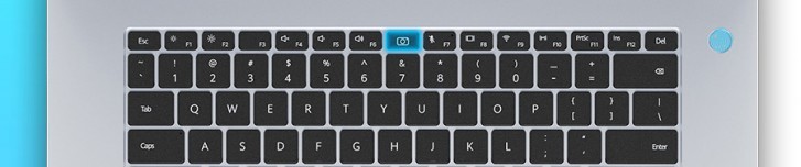 Tipka za uključivanje izdvojena je od ostatka tipkovnice, nalazi se u gornjem desnom kutu kućišta i sadrži integriran čitač otiska prsta pa osim za uključivanje laptopa može poslužiti i za prijavu u sustav. Poput laptopa iz serije MateBook i ovi imaju skrivenu web kameru. Kamera je skrivena u gornjem redu tipki, između funkcijskih tipki F6 i F7.