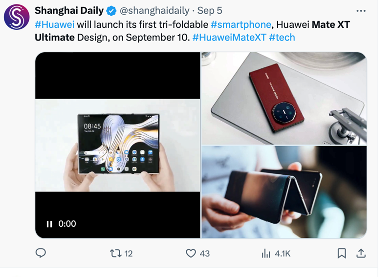 Novi trostruko preklopni pametni telefon tvrtke Huawei, nazvan Mate XT, privukao je veliku pozornost na kineskom tržištu. U samo prvih sedam sati u subotu, uređaj je zabilježio oko 1,3 milijuna predbilježbi.