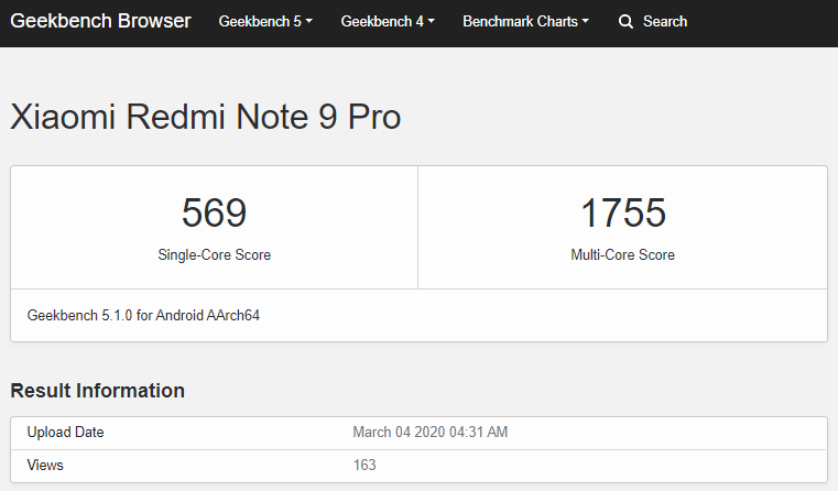 Redmi Note 9 Pro na Geekbenchu