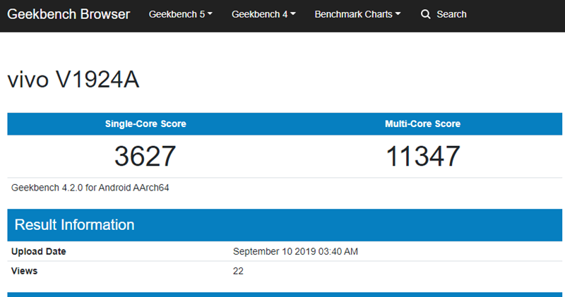 Par dana prije službenog predstavljanja Nex 3 5G pojavio se i u bazi popularnog benchmarka Geekbench. U bazu je upisan pod nazivom „vivo V1924A“. Shodno tomu potvrđene su informacije vezano uz Soc (Snapdragon 855 Plus), ali su otkrivene i dodatne informacije o uređaju.