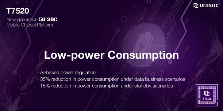 Novi čip je i energetski efikasan što je rezultat dizajna kojim je unutar jednog čipa integriran i 5G modem. Zahvaljujući tome, Unisoc T7520 troši 35% manje energije u odnosu na čipove koji se oslanjaju na odvojen 5G modem, primjerice Snapdragon 865 i Exynos 990.
