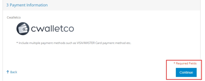 Odaberite CWALLETCO kao platformu plaćanja i nastavite na sljedeći korak.