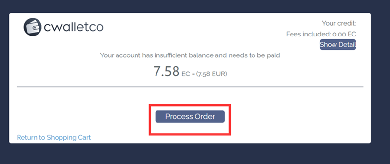 Odaberite CWALLETCO kao platformu plaćanja i nastavite na sljedeći korak.