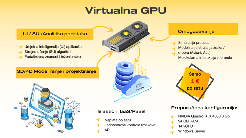 Ovaj model nudi fleksibilnost troškova resursa što pogoduje malim i srednjim firmama ili pojedincima u području umjetne inteligencije, strojnog učenja ili analitika podataka, jer zahtijevaju računalne resurse visokog opterećenja sa skupim GPU-om i velika ulaganja u skupu infrastrukturu. Štoviše, Elastični Cloudsy sa virtualnim mašina s vGPU-om omogućuju takvim korisnicima da mogu u bilo kojem trenutku svojeg projekta da eksperimentiraju i testiraju sa različitim konfiguracijama virtualnih po želji samog korisnika.