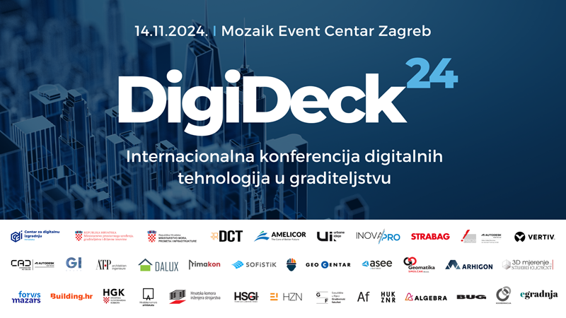 14. studenog 2024. održat će se DigiDeck24 - konferencija koja će ugostiti svjetske i domaće građevinske stručnjake s ciljem predstavljanja korištenja naprednih tehnologija i usvajanja novih procesa u građevini