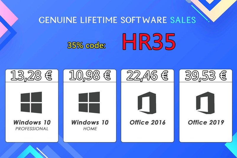 - Windows 10 Pro+Office 2016 Pro Keys Pack-Lifetime - 33,75 € (35% popusta uz promo kod HR35)