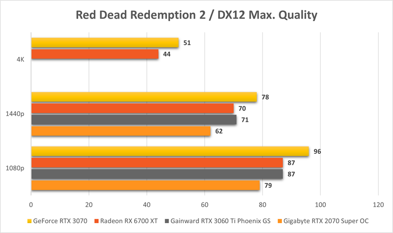 Radeon RX 6700 XT u našoj se bateriji testova pokazao u prosjeku sporiji u odnosu na Nvidjin RTX 3070, no brži od RTX-a 3060 Ti – baš kao što to njegova preporučena cijena implicira. Razlika u performansama dosta varira od naslova do naslova, pa tako postoje igre koje bolje leže GeForceicama i gdje RTX 3060 Ti ima jednake ili bolje performanse kao RX 6700 XT (npr. TW: Troy, Shadow of the Tomb Raider, Metro: Exodus), ali i one gdje RX 6700 XT guta piksele jednako brzo ili brže kao RTX 3070 (AC Valhalla, Godfall, Borderlands 3). Iako kartica nije optimalno rješenje za igranje pri razlučivosti 4K, naša mjerenja pokazuju da je tu pad veći od očekivanja u odnosu na RTX 3070, a razlog je smanjeni kapacitet Infinity Cachea u odnosu na kartice s GPU-om Navi 21. Iznimka je Ghost Reacon: Breakpoint koji s našim postavkama pri razlučivosti 4K troši više od 8 GB memorije, pa su performanse Nvidijine kartice katastrofalne. Općenito, Radeon RX 6700 XT pri razlučivosti 1440p u najzahtjevnijim naslovima može ponuditi odličnu igrivost i performanse debelo iznad 60 sličica po sekundi. Prebacivanje na razlučivost Full HD osigurava značajno više performanse i mogućnost iskorištavanja monitora sa brzim panelima. Igranje pri 4K je itekako moguće, ali uz manje ili veće smanjivanje kvalitete prikaza, što varira od naslova do naslova.