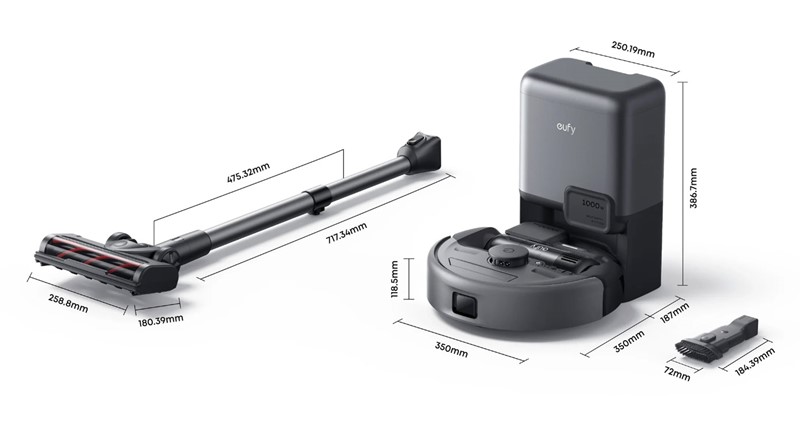 Robotski usisivač Anker Eufy E20 ističe se svojim inovativnim dizajnom koji spaja tri različita uređaja u jedan, što olakšava održavanje čistoće u domu bez potrebe za više aparata. Glavna prednost je ta svestranost: može raditi kao autonomni robot za svakodnevno čišćenje podova, pretvoriti se u štapni usisivač za teže dostupna mjesta poput tepiha ili namještaja, te poslužiti kao ručni usisivač za brzo uklanjanje prašine s polica ili automobila.