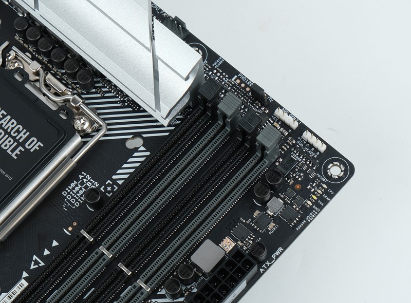 Iako je riječ o ploči koja košta oko 3.000 kuna, Prime Z690-A isporučuje se s minimalnim setom dodatne opreme, koji se sastoji od dva SATA kabela i dodataka za instalaciju M.2 SSD-ova. Serija Prime specifična je po svjetlijem dizajnu, pa su metalni elementi srebrne boje, a plastični uglavnom bijele. Gornjom polovicom ploče tako dominiraju veliki aluminijski hladnjaci postavljeni preko 16+1-faznog naponskog modula, komplementarni s ukrasnom bijelom maskom koja prekriva stražnje konektore i drži integrirani zaštitni limić na mjestu. Tu je i nenametljivo integrirano RGB osvjetljenje, koje popunjava prostor između ukrasnog oklopa i većeg VRM hladnjaka. Proizvođač u dokumentaciji i promotivnim materijalima ne specificira koliko jaku vršnu struju mogu propustiti elementi koji čine naponsku jedinicu, no može se pretpostaviti da je riječ o 70-amperskim integriranim elementima.