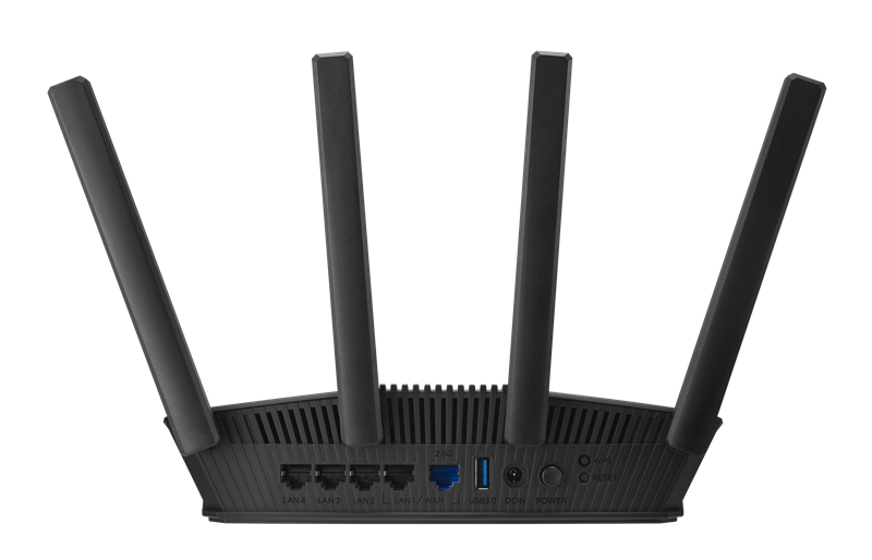 Stražnja strana sadrži četiri gigabitna mrežna porta (jedan može dublirati kao sekundarni WAN port), jedan 2,5-gigabitni WAN port (tu ćete spojiti modem vašeg davatelja internetske usluge), USB 3.0 konektor, tipku za uključivanje te tipke WPS i Reset. Zanimljivo je da tipka za resetiranje uređaja nije uvučena u rupicu, gdje bismo ju morali nabadati iglicom, već je tek toliko udubljena da se ne može pritisnuti slučajno, no kad ju želimo aktivirati, za to nam neće trebati nikakav alat.