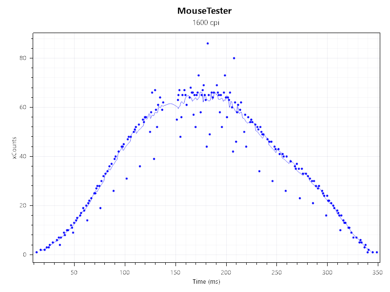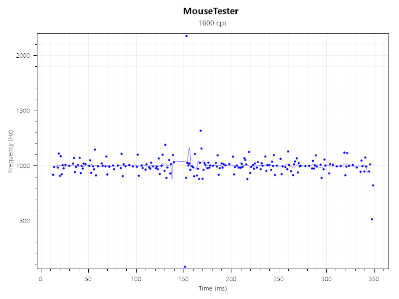 Očekivano je kod velikog broja odaziva vidjeti i poneke anomalije u radu miša, a ona mogu biti rezultat hardvera ili softvera miše no također mogu biti uzrokovana podlogom. U ovom slučaju vidimo da očitanja koja odudaraju od prosječnih vrijednosti dolaze u pravilnim intervalima što upućuje na hardverska ograničenja ili namjeru dizajnera. Kako god bilo, takve anomalije ne utječu na kriviulju prosjeka, a to znači da je pokret dobro "snimljen" te da miš ispravno registrira ono što smo napravili rukom na mišu.