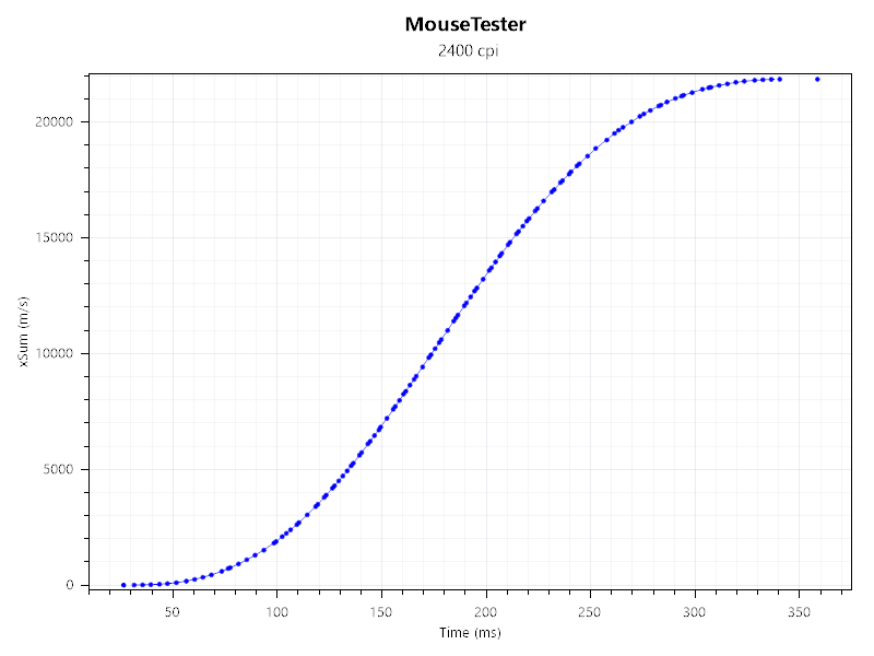 Grafikon iznad prikazuje stabilnost veze miša s računalom. U idealnom slučaju, linija će na svim postavkama biti ravna. Eventualne nepravilnosti negativno utječu na odaziv i smanjuju pouzdanost miša.