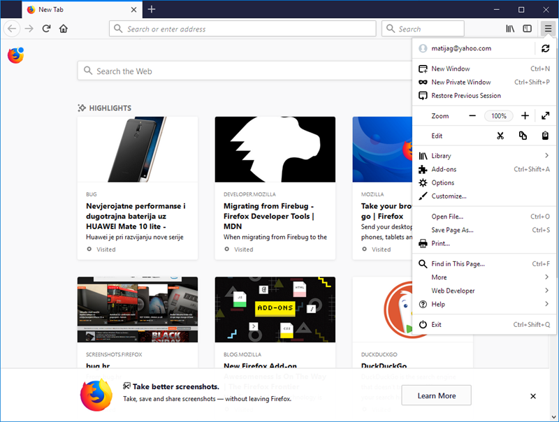 Ipak, Firefox uvodi i neke zgodne novosti. Prije svega je tu daleko naglašenija integracija servisa Pocket koji je Mozilla kupila prošle godine, a koji omogućava spremanje sadržaja s web stranica kako bi ih se kasnije pročitalo. Uputno je na taj servis prijaviti se s Firefoxovim računom koji je potreban ako se želi koristiti mogućnost sinkronizacije kartica i međusobno slanje kartice između Firefoxa kako na računalu tako i na pametnim telefonima. Naime, iako je moguće Pocket koristiti i bez prijave, puna funkcionalnost se dobiva tek prijavom. Tu je i podrška za WebAssembly što će posebno biti zanimljivo razvojnim inženjerima, a ne smiju se zaboraviti spomenuti niti odlični alati za razvojne inženjere koji nisu nikada bili bolji (samo valja pritisnuti kombinaciju tipki CTRL+SHIFT+I i uvjeriti se u to).
