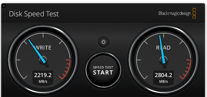 | Blackmagic Disk Speed Test (SSD) - čitanje | 2739 MB/s | 2804 MB/s |