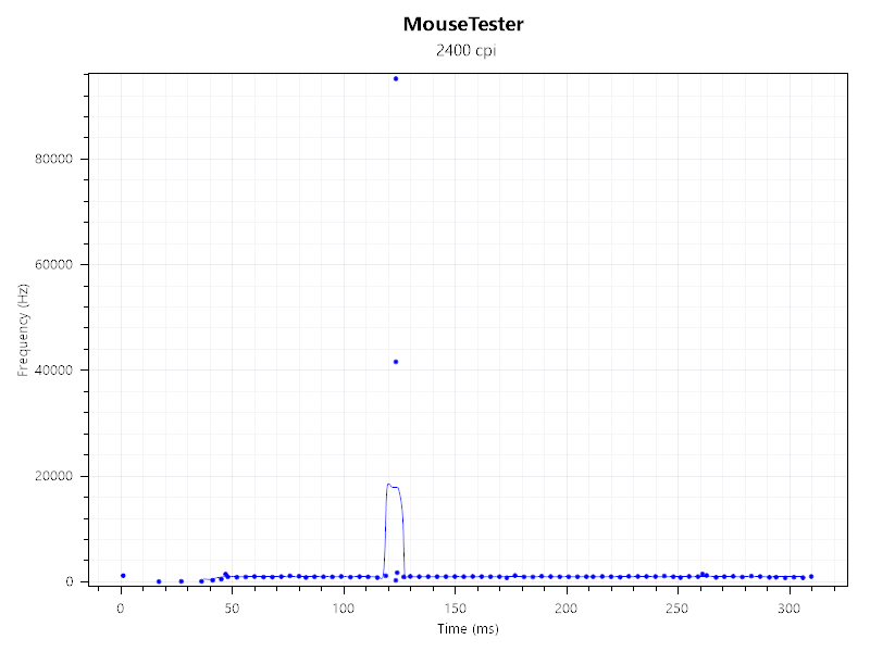 Grafikon iznad prikazuje stabilnost veze miša s računalom. U idealnom slučaju, linija će na svim postavkama biti ravna. Eventualne nepravilnosti negativno utječu na odaziv i smanjuju pouzdanost miša.