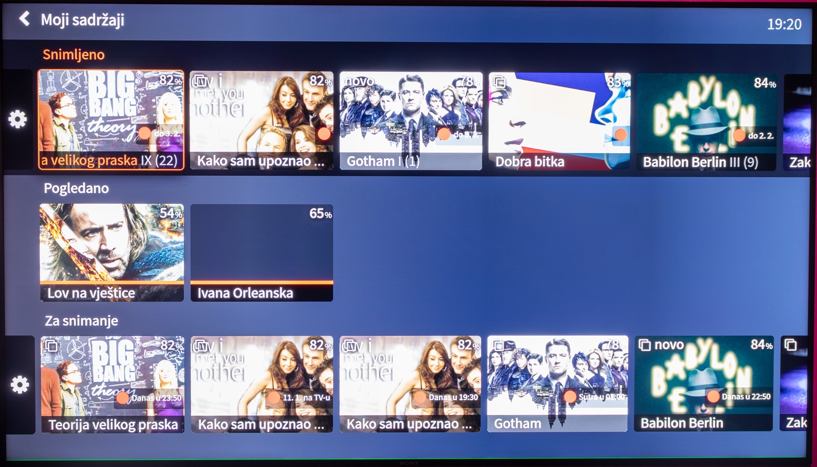 U kategoriju "Moji sadržaji" automatski se smještaju sadržaji koje smo već pogledali, čije smo gledanje započeli, kao i oni koje smo ručno "snimili". Samo snimanje zapravo je samo korak kojim sustavu kažemo da nam odabrani sadržaj učini dostupnim u narednih 30 dana, a moguće ga je primijeniti na svim dostupnim televizijskim kanalima, i za sve emitirane sadržaje.