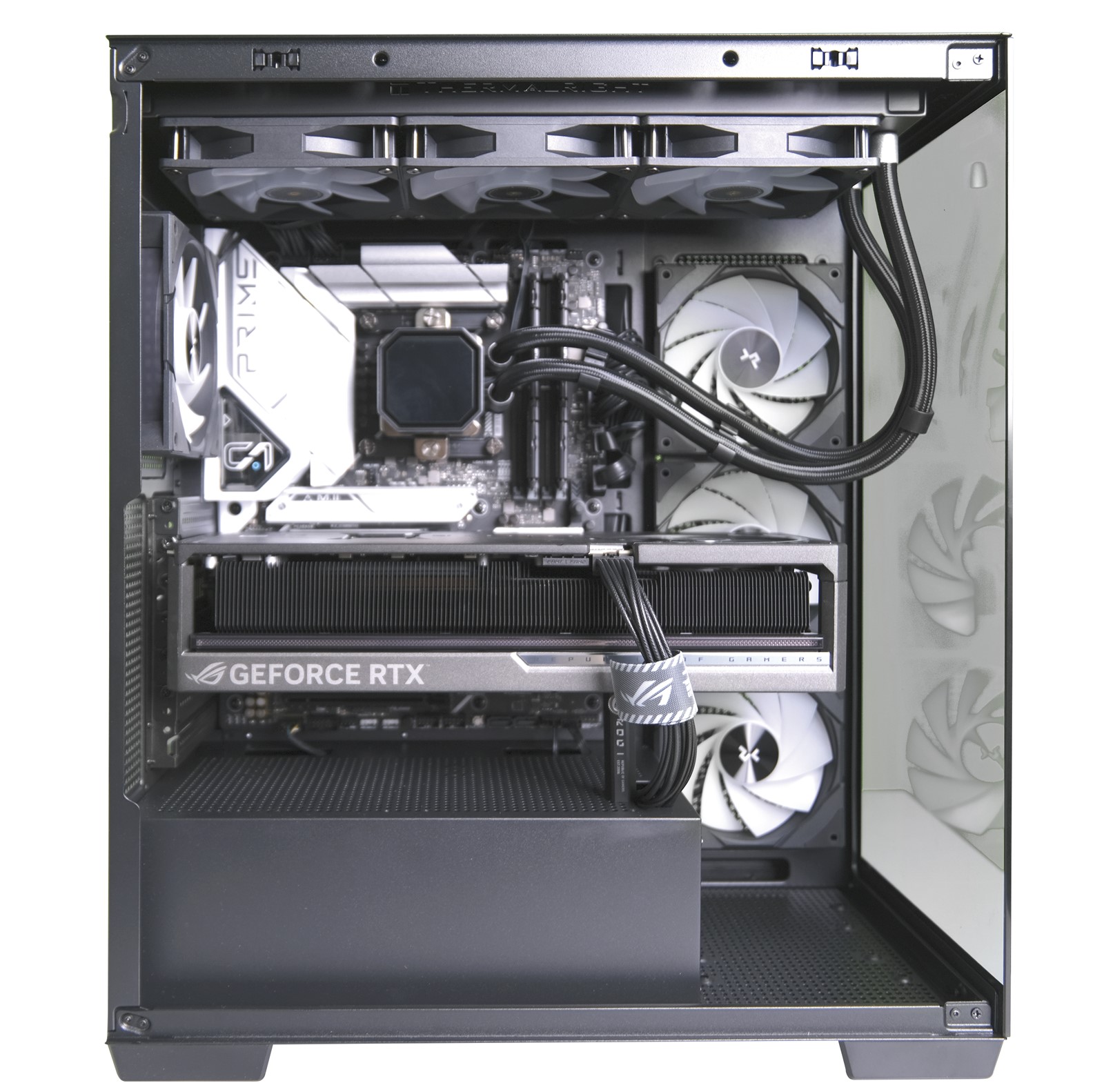 Svu snagu za rad računalo dobiva iz Asusova modularnog napajanja iz serije TUF, snage 850 W. Radi se o kvalitetno proizvedenom napajanju, s velikom zalihom snage, ali prilikom sintetičkog opterećenja grafičke kartice i procesora, konfiguracija je iz utičnice povlačila pozamašnih 840 W, zahvaljujući neučinkovitom procesoru. Ipak, tijekom igranja potrošnja se kretala na razini od 600 W, pa igrači ne moraju strahovati od preopterećenja napajanja.