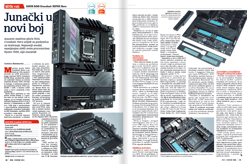 Uobičajeno je da se paralelno s promjenom socketa za procesore nove generacije na tržištu pojave i brojne nove matične ploče , pa tako već u ovom broju imamo recenziju i dvije Socket AM5 ploče, jednu od Asusa (ROG Crosshair X670E Hero), a drugu od Gigabytea (X670E Aorus Master). Kako to već biva, proizvođači odmah u startu žele impresionirati potencijalne korisnike, tako da smo na test dobili prestižne modele, namijenjene zahtjevnim kupcima, a to u prijevodu znači da će imati paprenu cijenu. No, doista su impresivne, to im nitko ne može osporiti, vidjet ćete to i sami…
