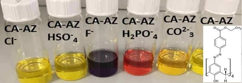Pogledamo li naime grozomornu formulu kaliksarena CA-AZ (kojoj je na slici prikazana samo jedna četvrtina) primijetit ćemo hidroksilnu (-OH) skupinu vezanu za aromatski (šesteročlani) prsten. Ta hidroksilna, točnije fenolna skupina otpušta vodikov ion (H+) koji se potom veže za atom dušika. Uslijed toga gornji se dio molekule nabija pozitivno, pa veže za sebe negativno nabijene ione, anione. U rečenom znanstvenom radu istraženo je vezanje pet aniona – klorida (Cl-), fluorida (F-), hidrogensulfata (HSO4-), dihidrogenfosfata (H2PO4-) – i, najvažnije, karbonata (CO32-), aniona ugljične kiseline.
