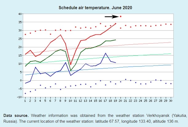 U ruskom sibirskom gradu Verhojansku 20. je lipnja izmjerena dnevna temperatura od čak 38°C, najviša ikada zabilježena unutar Arktičkog kruga. Ovaj rekord samo nastavlja niz nekoliko iznadprosječno toplih mjeseci za regiju Arktika (i ne samo Arktika), koji su prošlu zimu postavili na vrh ljestvice najtoplijih otkako su, prije 130 godina, znanstvenici počeli s mjerenjima. Da stvar bude gora, američka agencija za oceane i atmosferu NOAA (National Oceanic and Atmospheric Administration) procjenjuje kako je trenutačno vjerojatnost od 75% da 2020. godina bude najtoplija ikada.